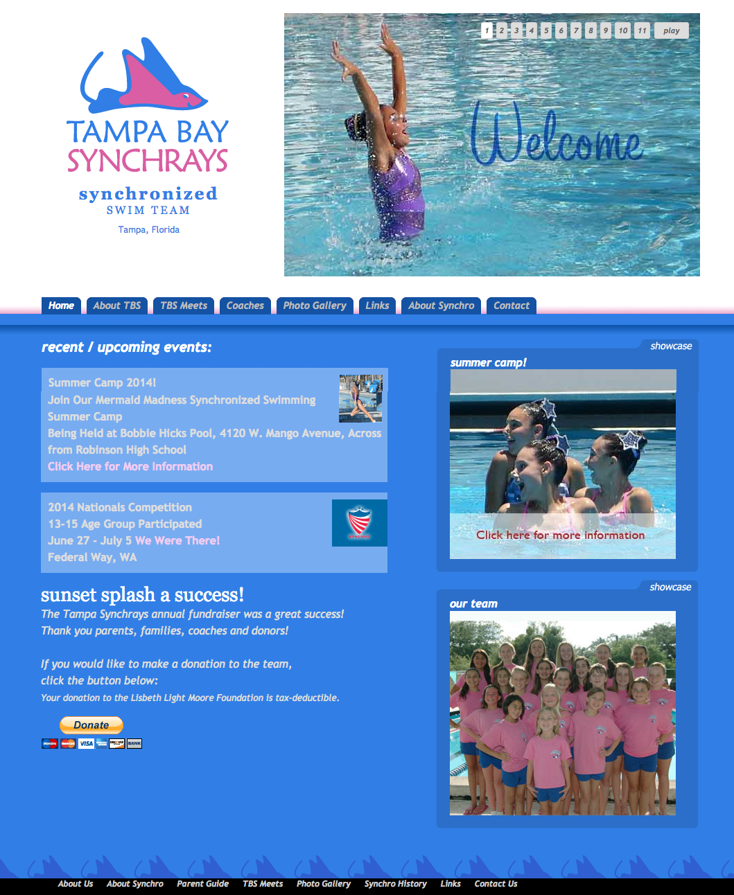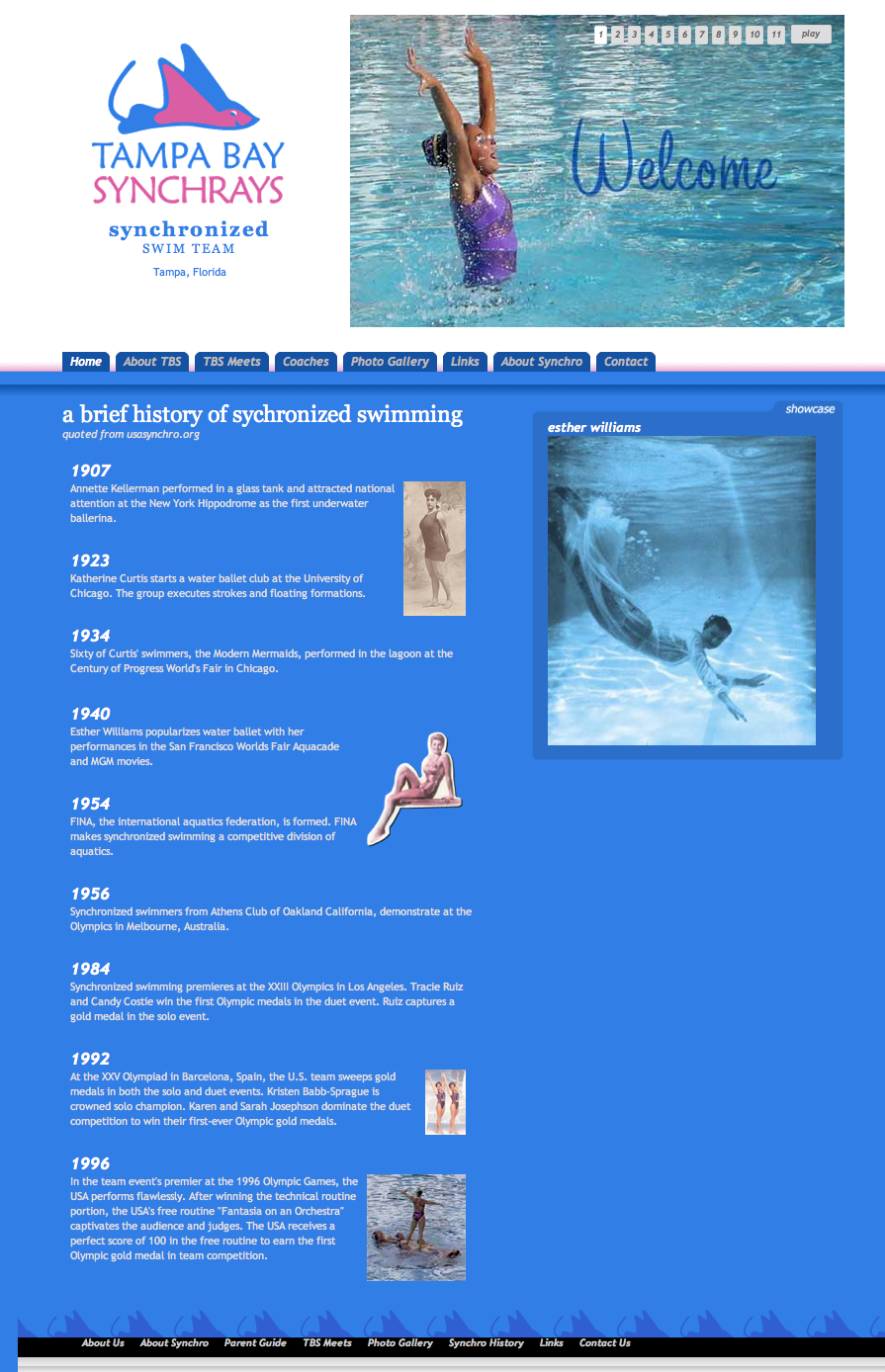Just Small Biz TampaApplication of a Genesis Theme to this Marketing Agency.Toscana InstituteDesign and development for this vacation retreat destination in Italy.Suncoast Yoga Teachers AssociationDesign and Development for a Yoga Teachers Membership site using the Genesis theme.NuQuest WebinarDesign and development for an NQBP WebinarJohn the Stump Grinder GuyDesign and development for this stump removal companyInside NQBP online newsletterDesign and development of a Settlement Newsletter for NQBP.Nuquest PMDRDesign Pre-MSA landing page for NQBPNuQuest - The MSA ExpertsDesign MSA Experts landing page for NQBP.Jill the Wedding LadyDesign and development of Jill the Wedding Lady wedding officiant websiteJill the Wedding LadyDesign and development of Jill the Wedding Lady wedding officiant website - photo pageInside NQBP online newsletterDesign and develop 'Inside NQBP' online newsletter for NQBPNuQuest Holiday GiftsDesign and development for an NQBP Holiday Gifts websiteNuQuest Settlement NewsDesign and development of an online Settlement News newsletter.NuQuest e-MSA LandingLanding Page for Nuquest e-MSA product.Interfaith Community Services, Tucson, AZMaintain and create content for this Joomla websiteInterfaith Community Services, Tucson, AZMaintain and create content for this Joomla websiteInterfaith Community Services, Tucson, AZMaintain and create content for this Joomla websiteTampa Bay SynchraysDesign and development for this site for a youth Synchronized Swimming teamTampa Bay Synchrays websiteHistory page from Tampa Bay Synchrays website